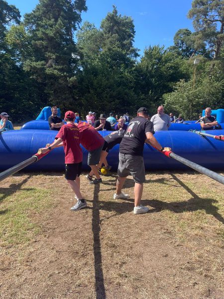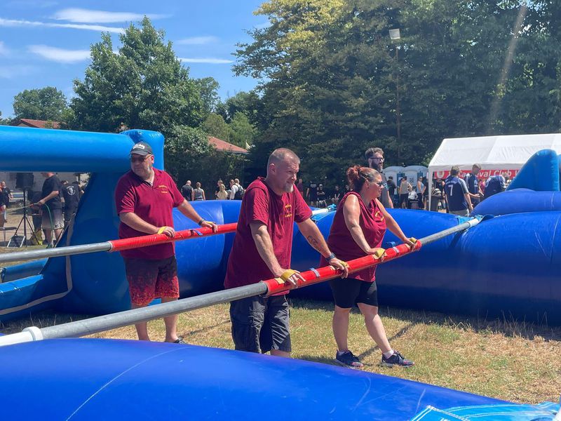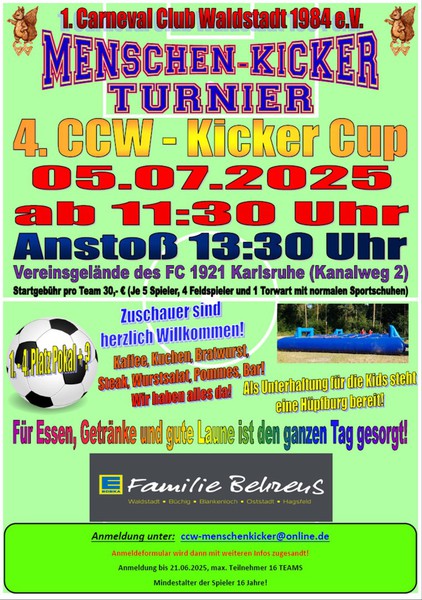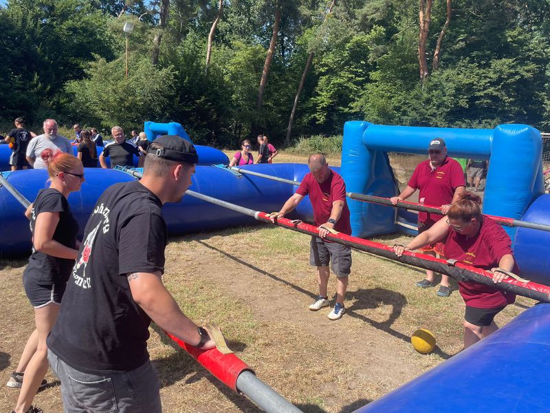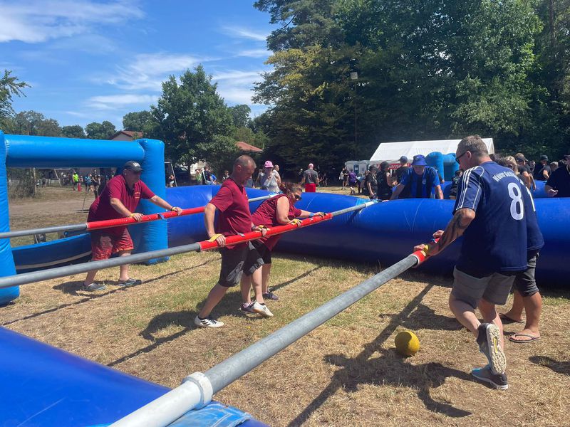 Auch bei m Menschenkickertrunier des CCW Waldstadt konnten wir ein Team stellen. Leider konnen wir allerdings nur 2 Spiele von sechs gewinnen. Trotzdem hat es eine Menge Spass gemacht und wir konnten einige tolle Konakte mit befreundeten Vereinen knüpfen. Manche Teilnehmer nehmen diese Turniere leider viel zu ernst , soll es doch hauptsächlich um den Spass gehen. Wir sind gerne wieder dabei, zumal das Wetter in diesem Jahr gut mitgespielt hat.