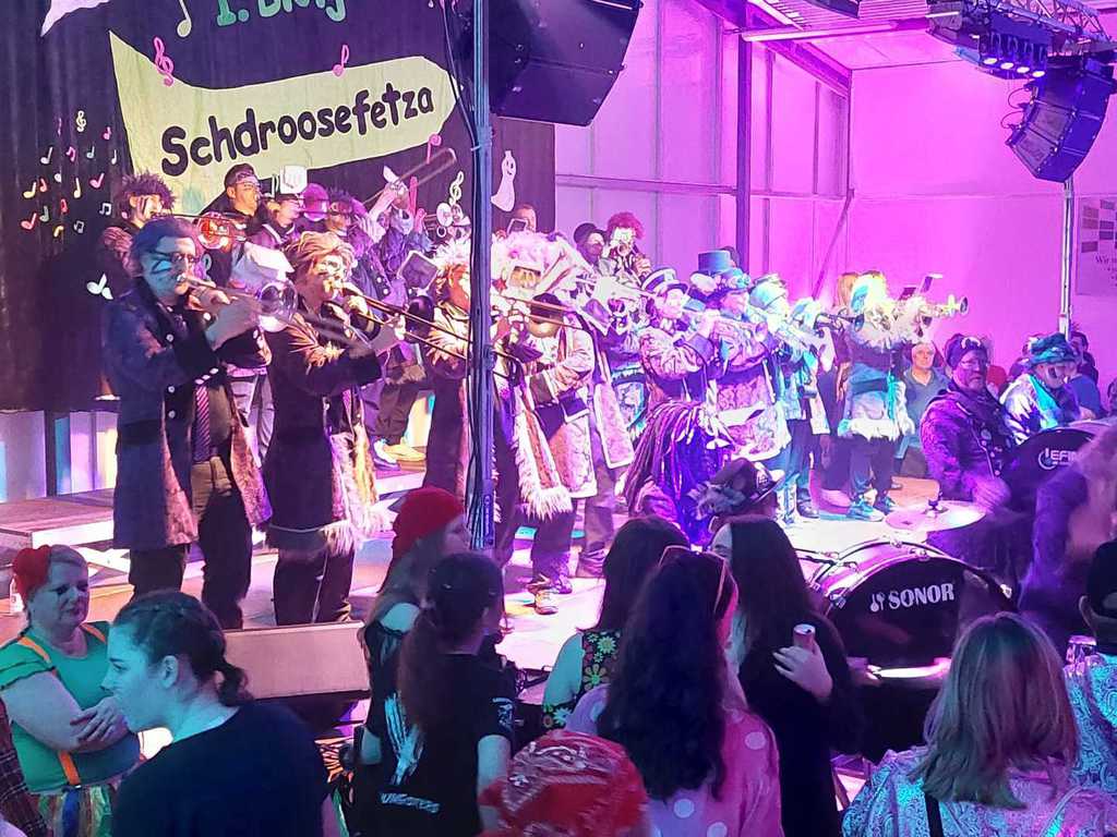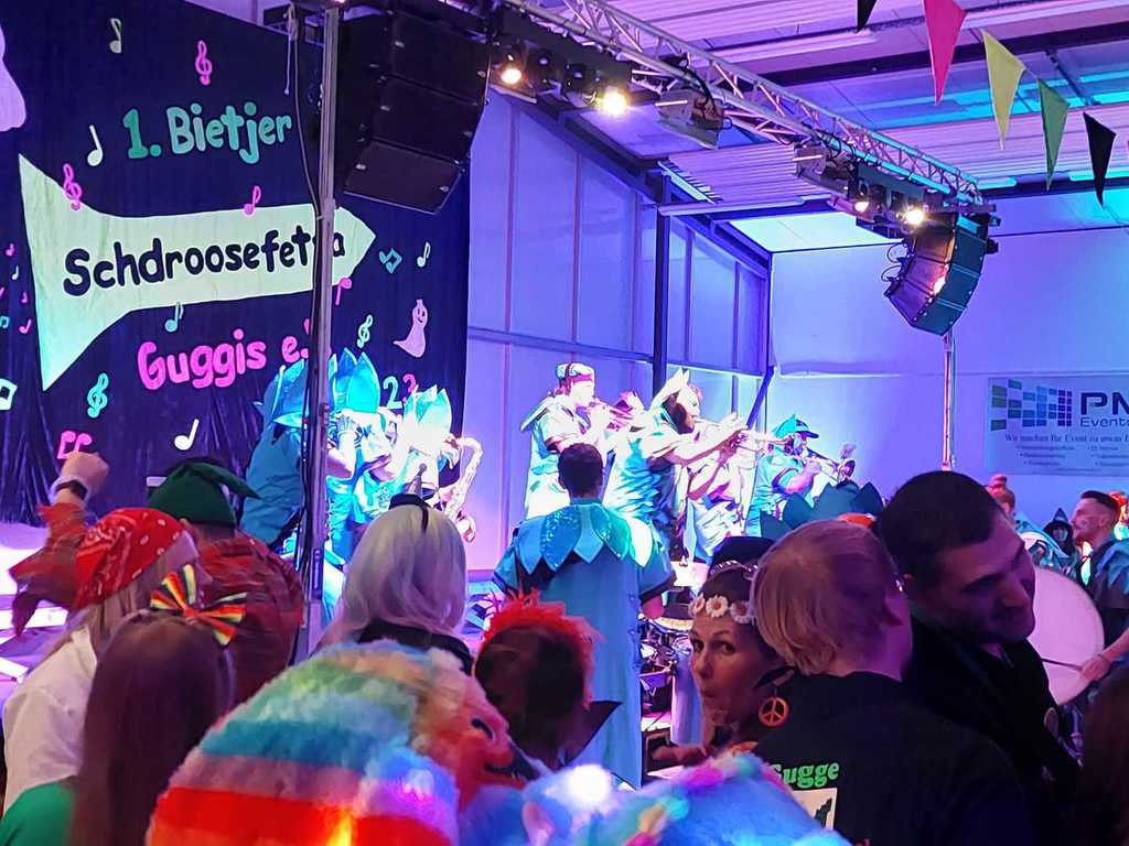 Schon traditionell ist unser Besuch beim Gugge im Schuppe der 1. Bietjer Schdroosefetza Guggis. Die Veranstaltung ist der ideale Start in das Fasnachtswochenende. Die