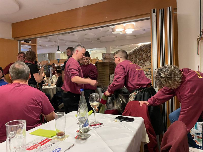 Wir trafen uns pünktlich um 18:00 Uhr in der Pizzeria FV Hochstetten um uns erst einmal bei Pizza, Pasta und anderen Köstlichkeiten zu stärken. Neben unseren Gästen der FNZ Philippsburger Geese und einem Vertreter der Hohenberghexen, waren ca. 35 Hexen und auch zahlreich interessierte Gäste anwesend.