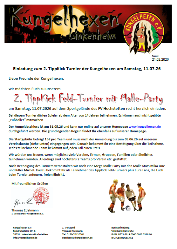 Nächstes Kungelhexen-Event: Freitag, 27.03.26 um 19:00 Uhr JHV im Turnhallenrestaurant TV Hochstetten